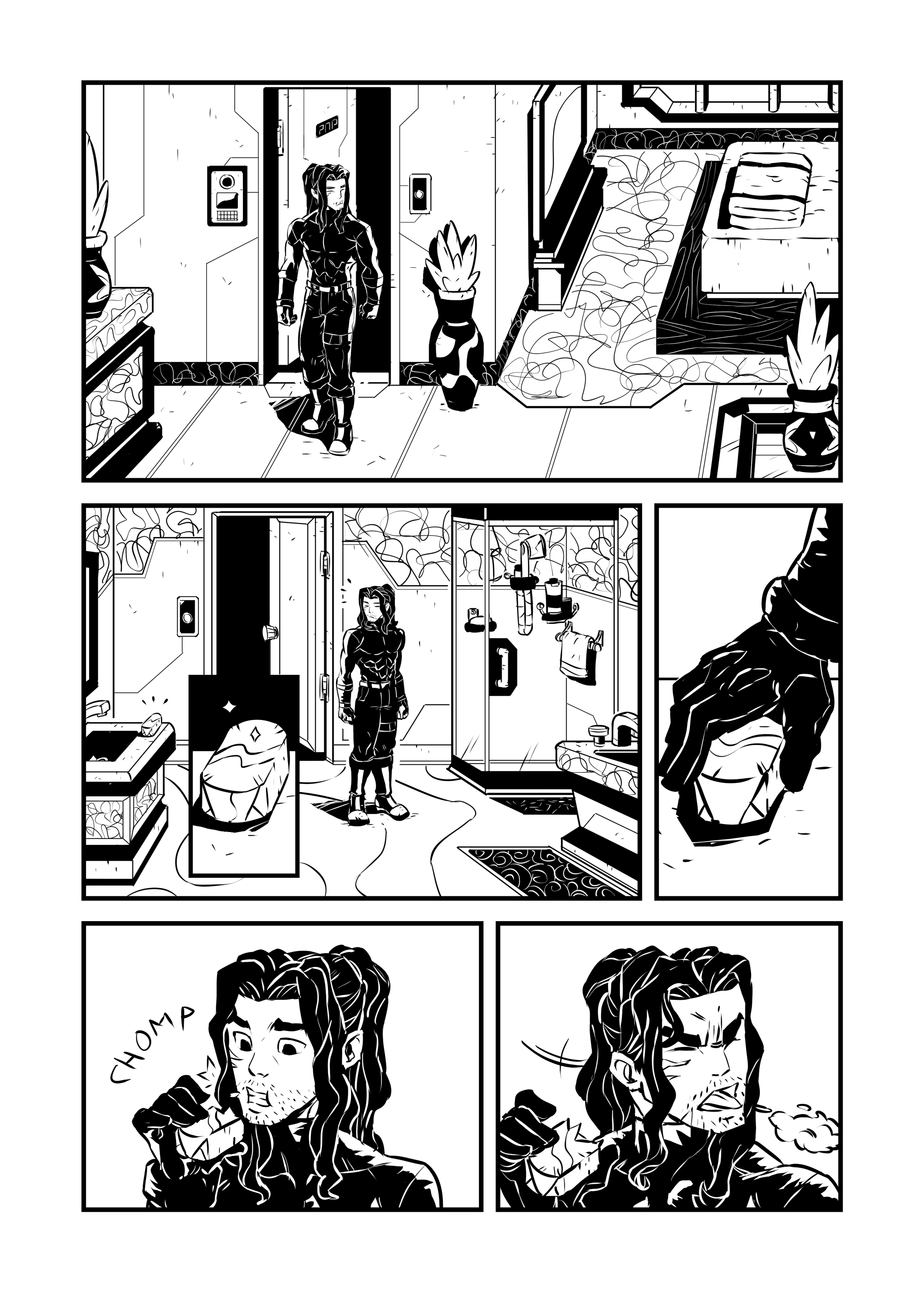 Before the trip to Ragnor 7, Ja is put up in a fancy hotel for the night. Though despite the comfort the battle-hardened super soldier has never seen the inside of a five-star hotel.What could go wrong?Art by Kame